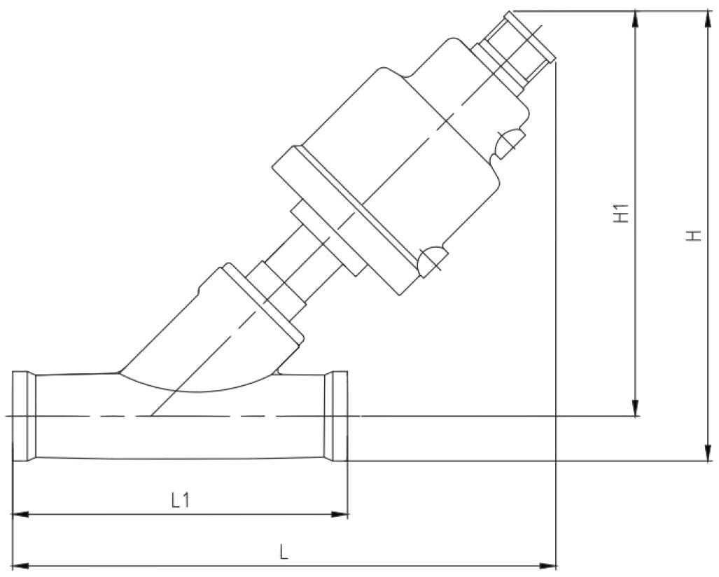 Erweitertes pneumatisches Schrägsitzventil YE2 aus Edelstahl (Schweißanschluss)