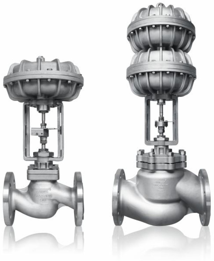 Schematische Darstellung der Hauptabmessungen eines Zweiwege-Flüssigkeitsregelventils