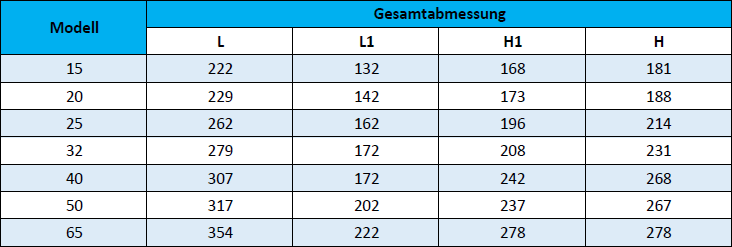 Schematische Darstellung der Hauptabmessungen des pneumatischen Y-Schrägsitzventils aus Edelstahl