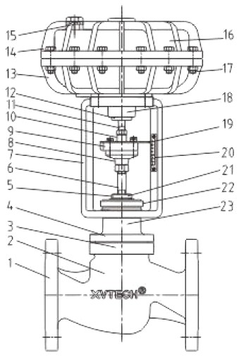 6. Der Antrieb ist mit einer mechanischen Hubanzeige und einer Membran ausgestattet, um direkt mit dem linearen Hub zu interagieren.